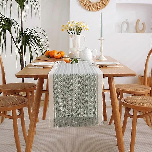 Handmade table runner with tassels, American jacquard table runner, tablecloth, dresser cover, towel, decorative dustproof cloth WHITE 33*275