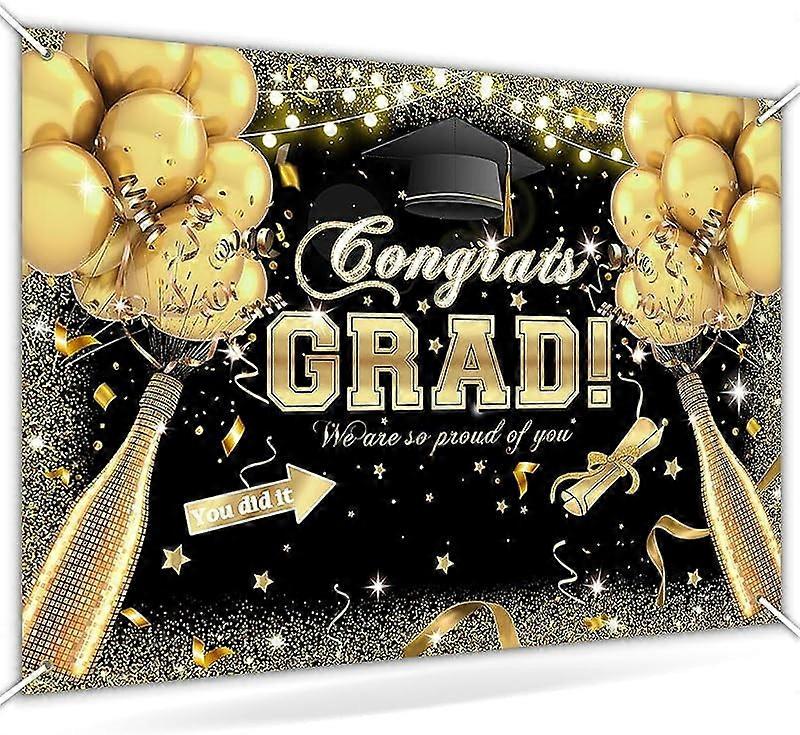 Congrats Grad Backdrop 7x5ft Royal Blue & Gold, Class of 2024 Graduation Decor, compatible with photo backdrops for grad celebration, prom party