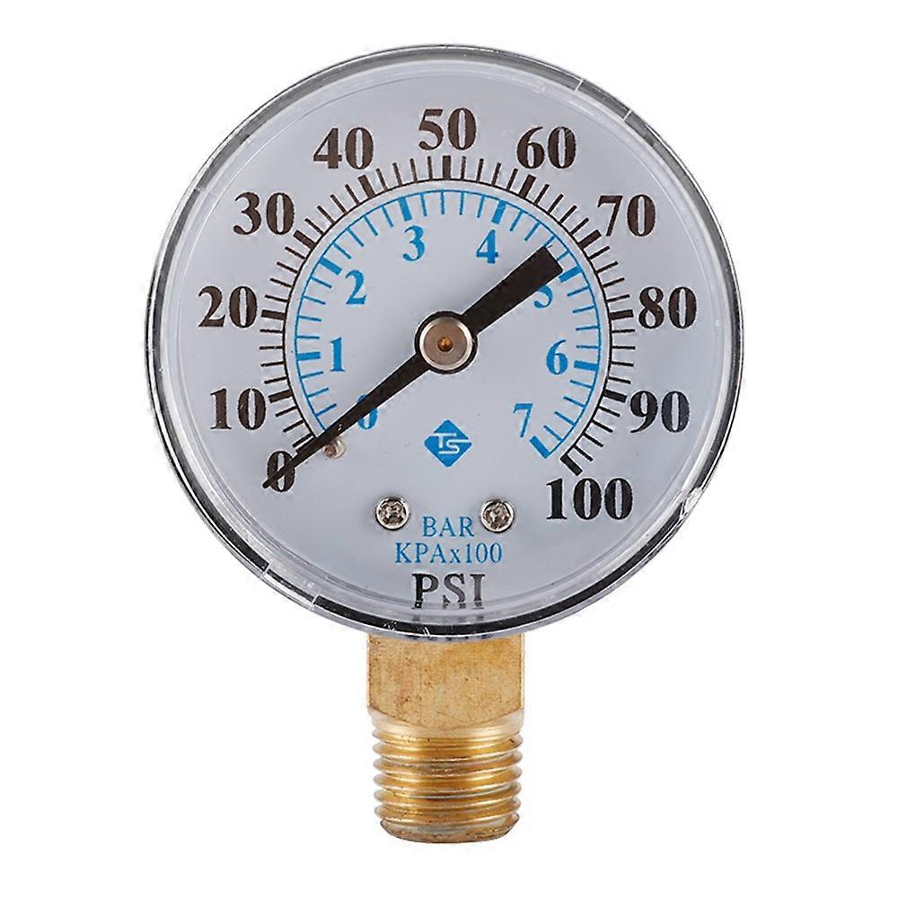 TS-Z54 0-100 PSI / 0-7 Bar Dual Scale Pressure Gauge Pool Filter Aquarium Water Air Gas Pressure Gauge Meter 1 / 4 NPT Bottom Moun