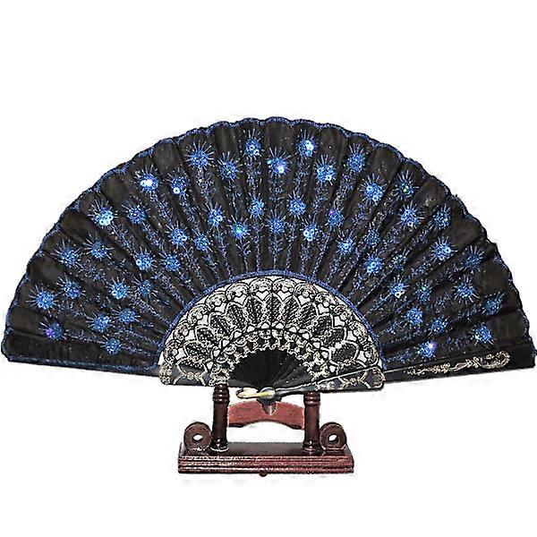 Fan - Sequins - Royal Blue Peacock with Plastic Base DarkBlue Royal Blue