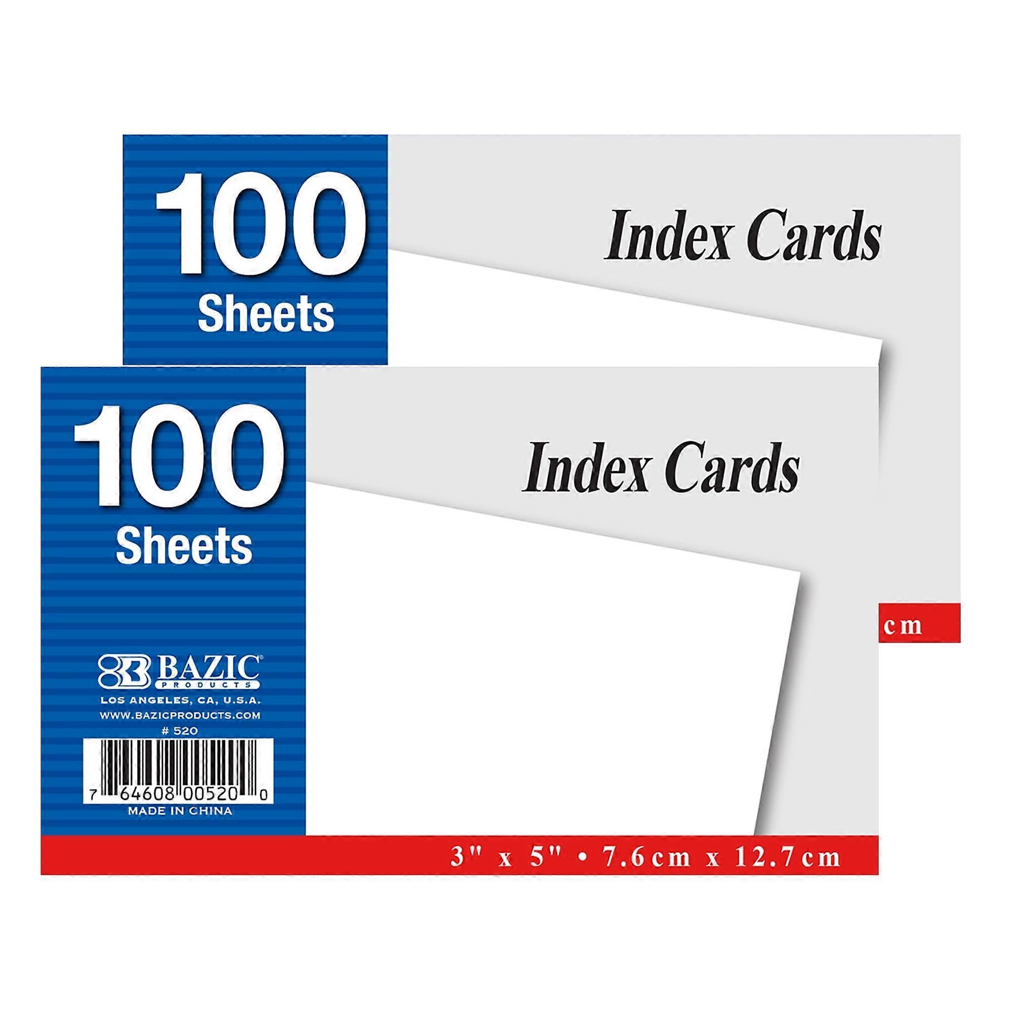 BAZIC Blank Index Cards 3" X 5" 200 Count, White Unruled Flashcards (100/Pack), 2-Pack