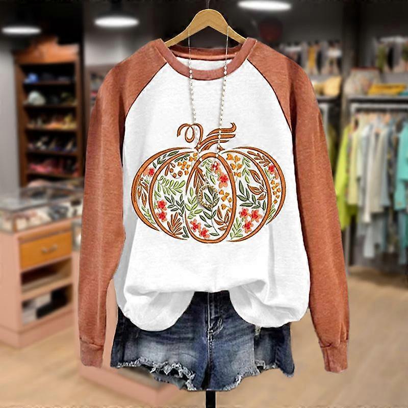 Cherrybetty Cotton Halloween Embroidery Color Block Long Sleeve Orange Floral Pumpkin Sweatshirt Women's Casual Soft Elastic Fabric Hoodie f