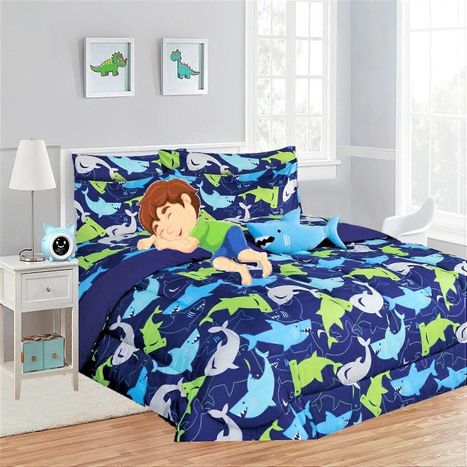 6 piece Twin shark blue bed in bag comforter and sheet set for Kids and Teens