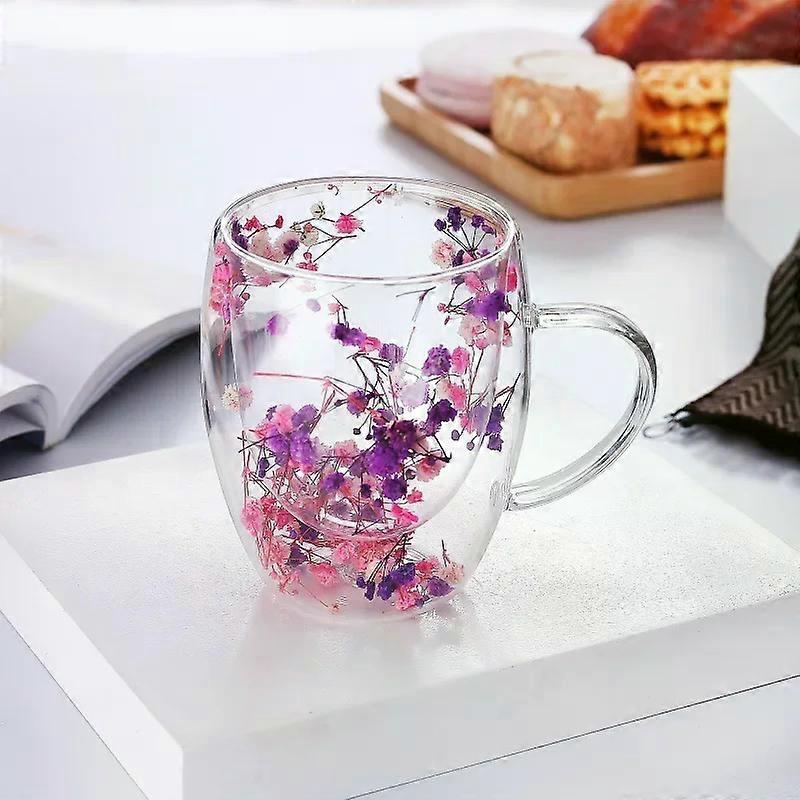 250ml / 350ml Double Wall Glass Cup Dry Flowers Insulated Flowers Espresso Cup Coffee Mugs Dual Layered Glass Cups Dried Flowers