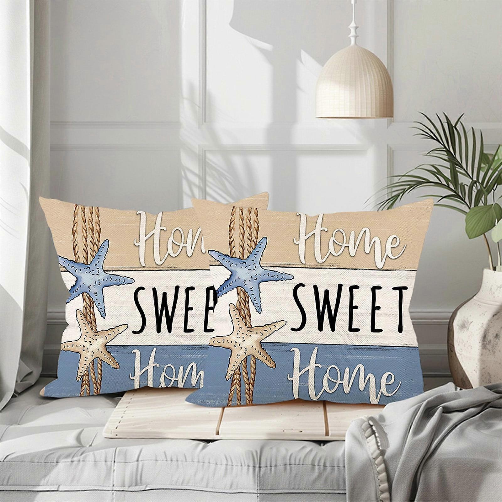 Txmfgh Summer Letters Polyester Pillow Set - Ocean Scallop Print, Multicolor Cushions for Sofa & Window, Allergy Protection & Easy Care