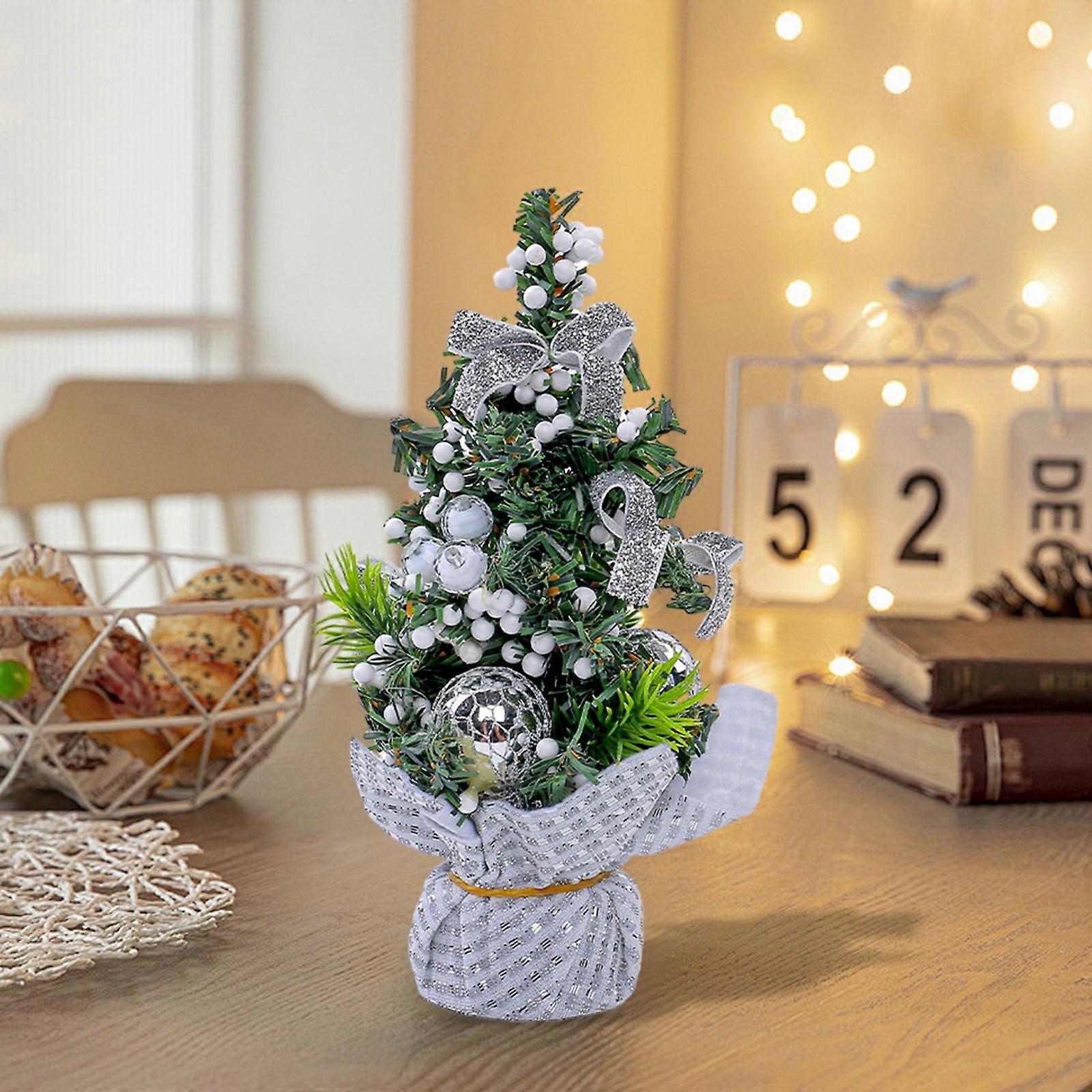 Mini Christmas Tree Tabletop Set with Balls, Berries & Star Top - Compatible with Christmas Table Decor - White