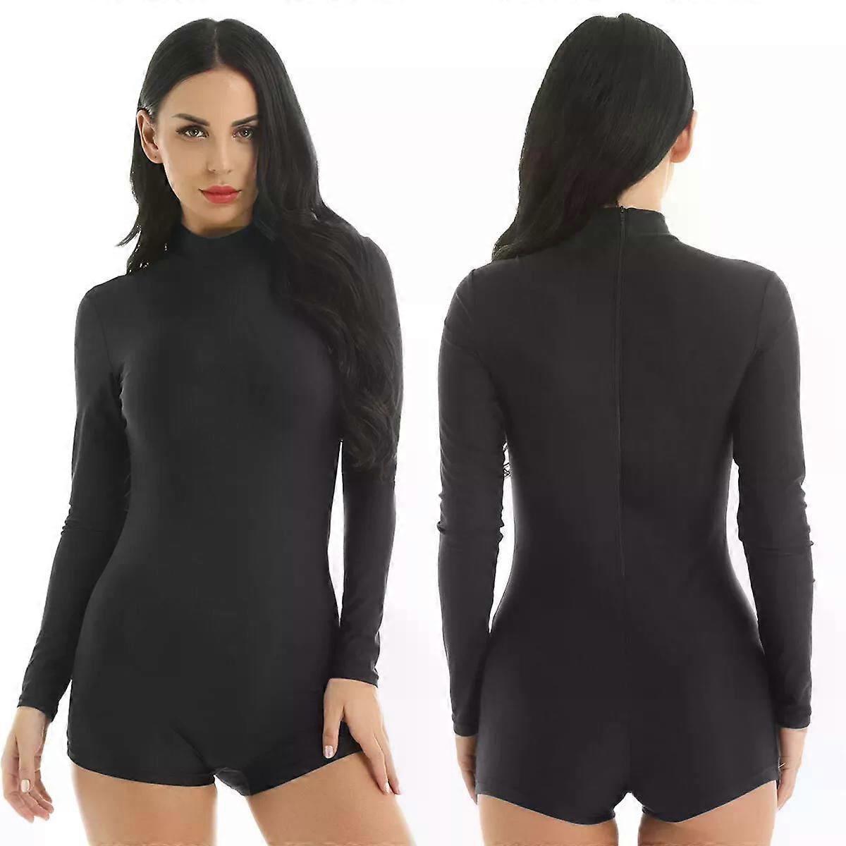 Women Long Sleeve Turtleneck Leotard Bodysuit Ballet Dance Jumpsuit Dancewear