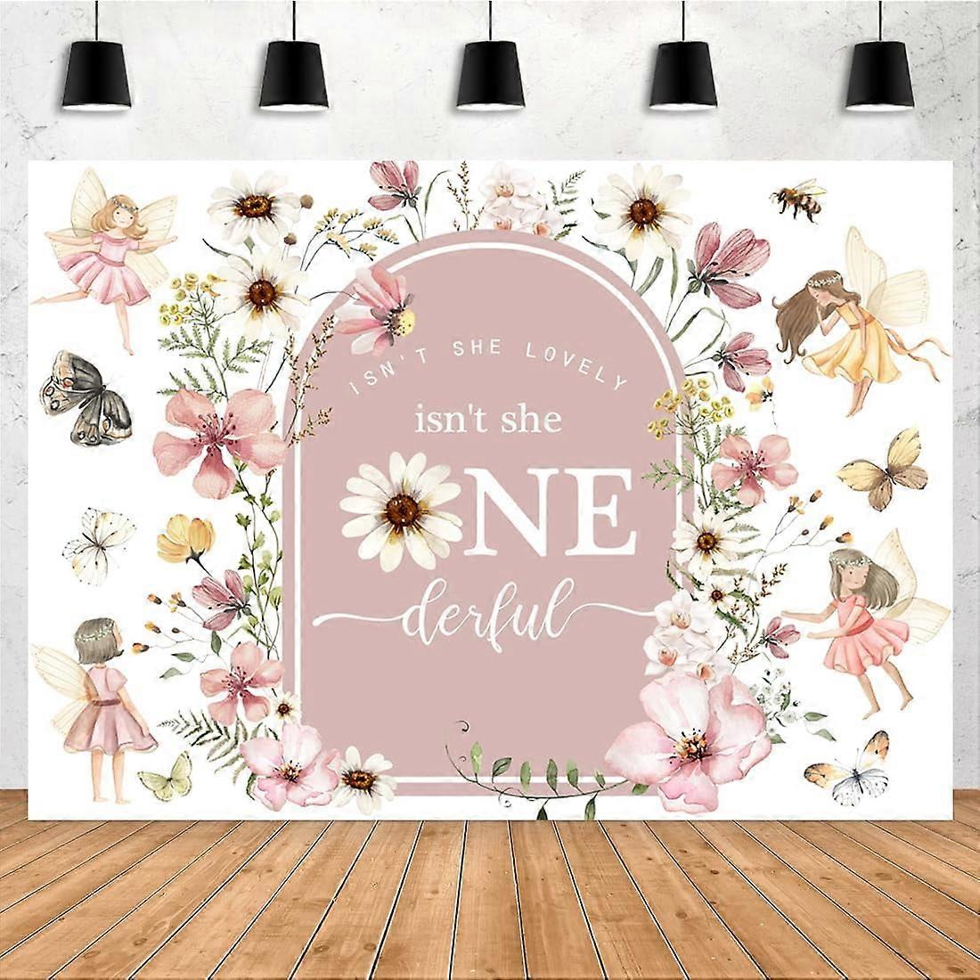 7x5ft Floral Fairy 1st Birthday Backdrop for Photography, Flowers Fairy Tale Tea Onederful Princess Girl Party Banner, Photo Booth Props