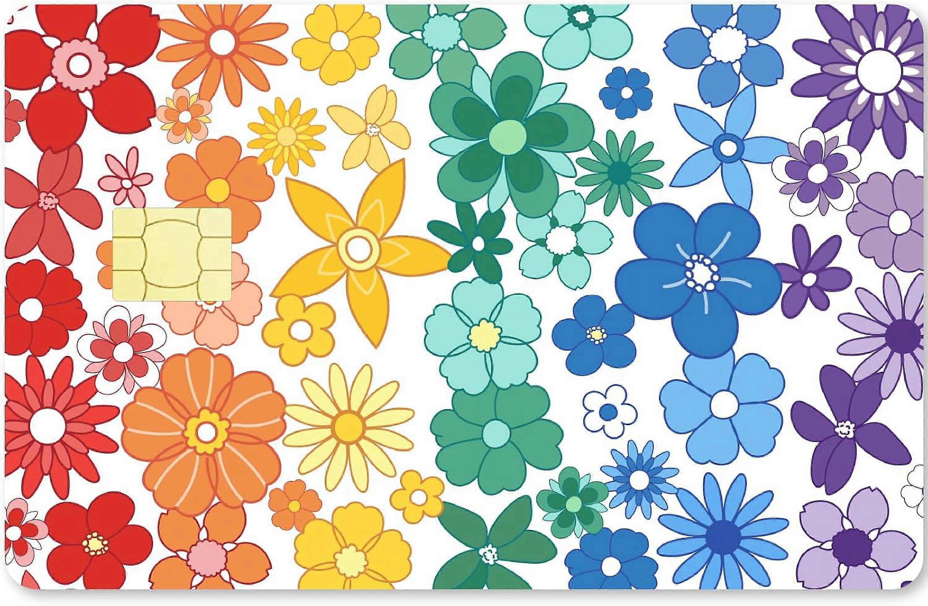 Colorful Flower Credit Card Skims, Compatible with 7.3x5.4Inch Bank Cards, Waterproof, Removable, No Bubble, Slim DIY Sticker for Key &