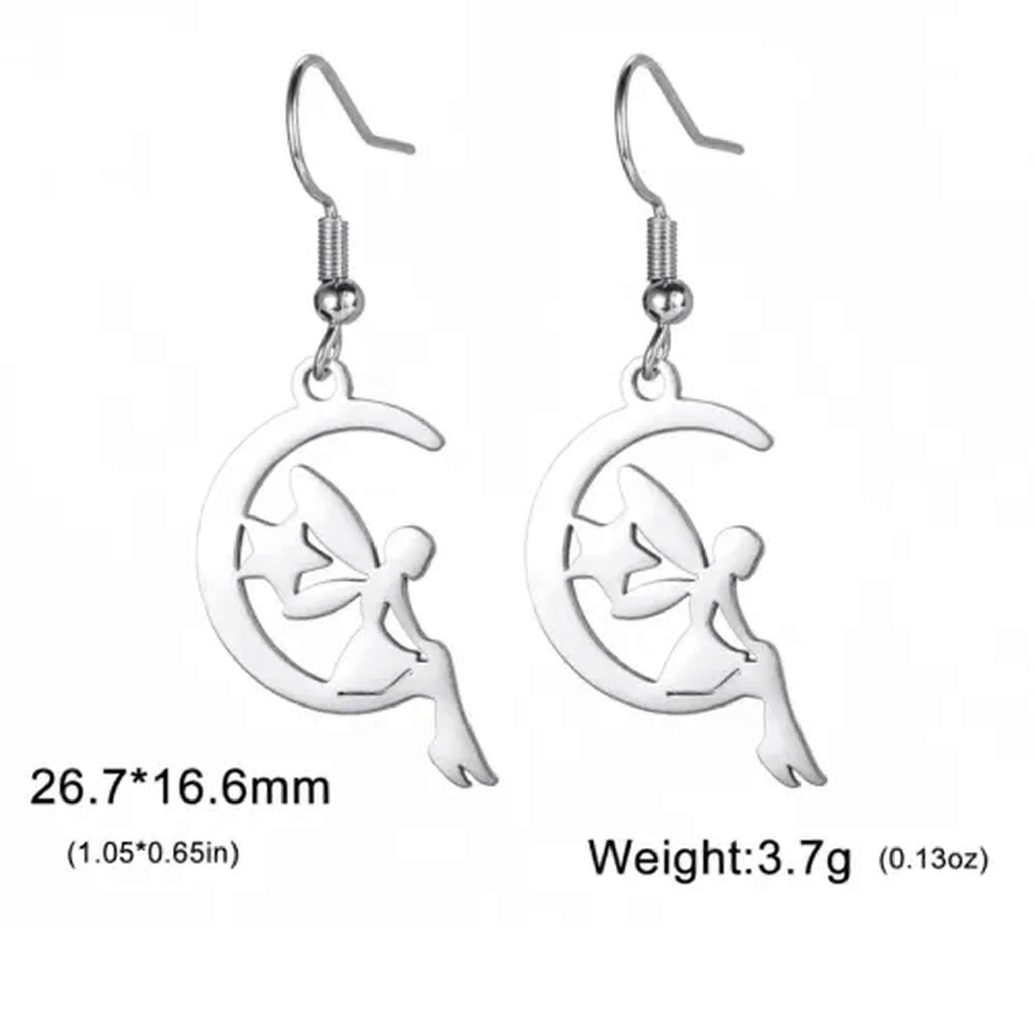 RSAMD Hollow Moon Star Drop Earrings Stainless Steel Pendant Dangle Earrings Jewelry-Steel