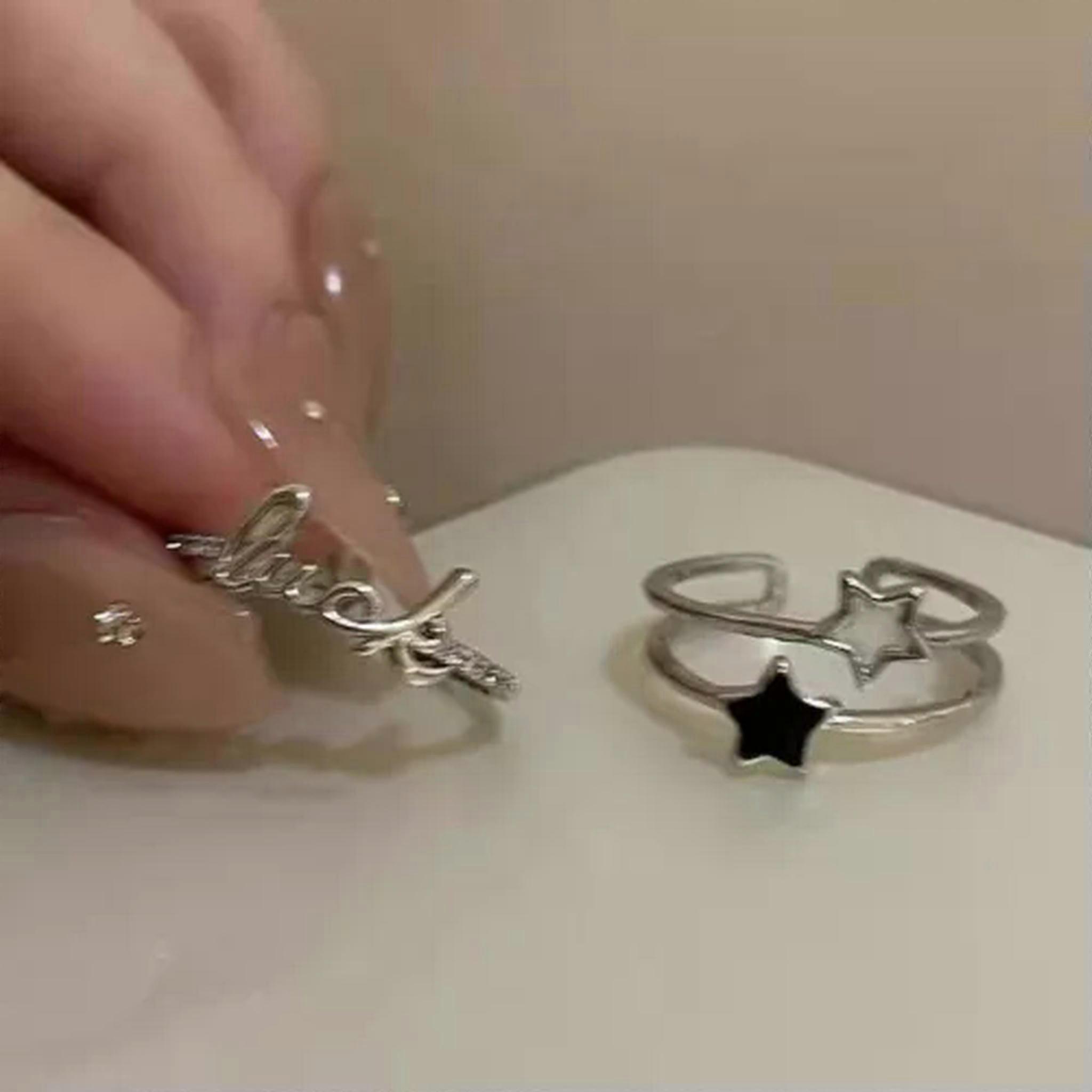 RSAMD Fashion Pentagram Star Letter Ring For Women Girls Double Layer Adjustable Rijo-A2