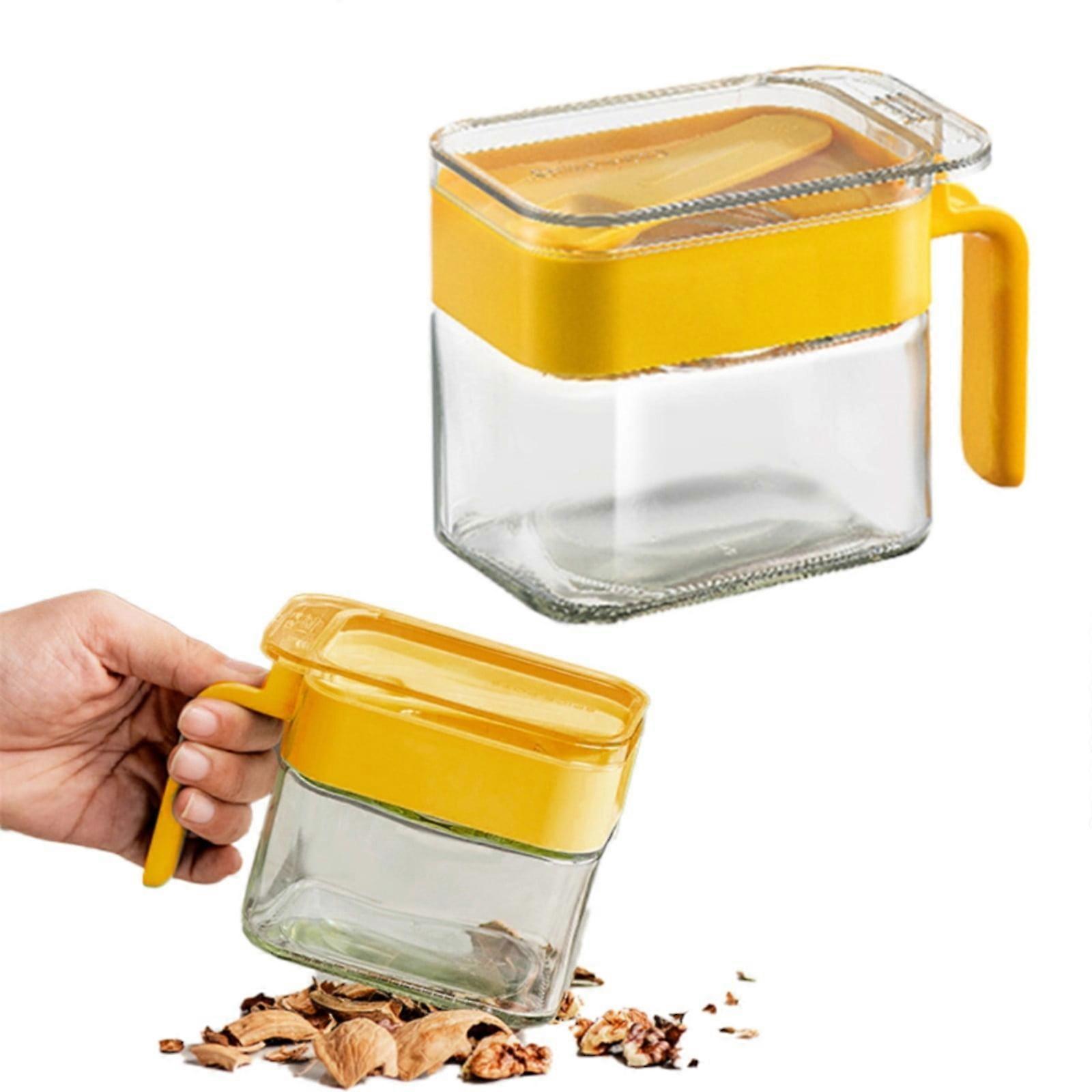 Miayilima Clearance Seasoning Box 1x with lid, 1x spoon, acrylic condiment jar yellow - kitchen home essential