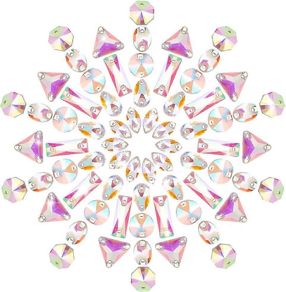 70pcs 7 Styles Crystal AB Sew On Rhinestones Oval/Teardrop/Horse Eye Flatback with Holes for Clothes, Wedding Dress, DIY Crafts