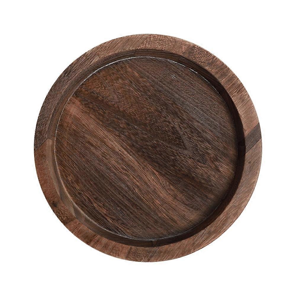Round Table Tray Wooden Solid Circle Serving Tray with Handle, Compatible with Home Decor, 20cm Black Walnut Platter
