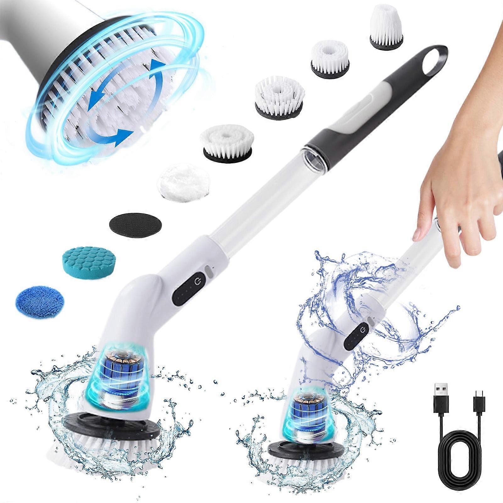 Electric Scrub Brush with 7 Heads & Extension Handle, High-Speed Rotate Power Cleaner for Bathroom, Floor, Tile – Compatible with Household Cleaning