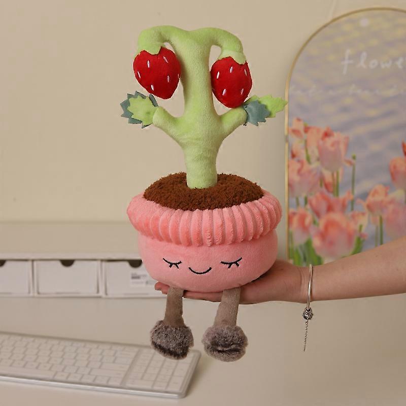 Funny Strawberry Rose Lotus Potted Plant Plush Toys Soft Pretty Cartoon Fruit Toys Lovely Desktop Decor Christmas Halloween Gift