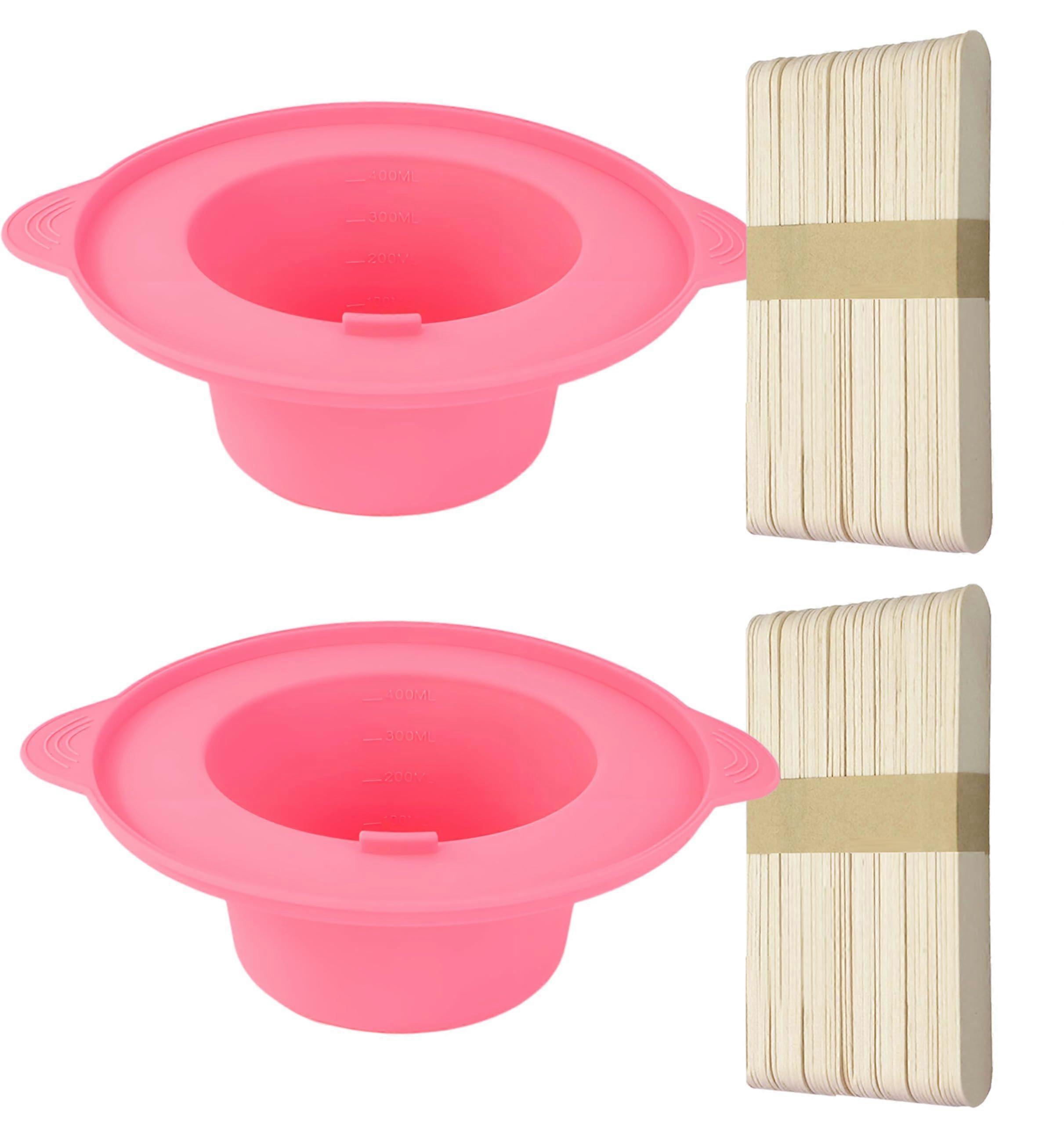 14oz Reusable Silicone Wax Warmer Liner with 100 Waxing Sticks, Nonstick Wax Pot for Hair Removal (2pcs Pink)