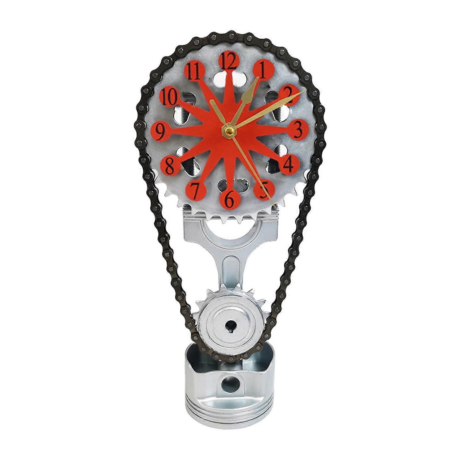 Vintage Gear Clock with Rotating Gears, Steampunk Industrial Silent Desk Decor for Home Office Men (Red)