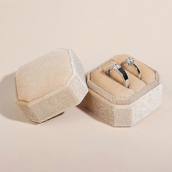 Octagonal Corduroy Ring Box Holder Jewelry Organizer Jewelry Set Beige Couple Ring Box