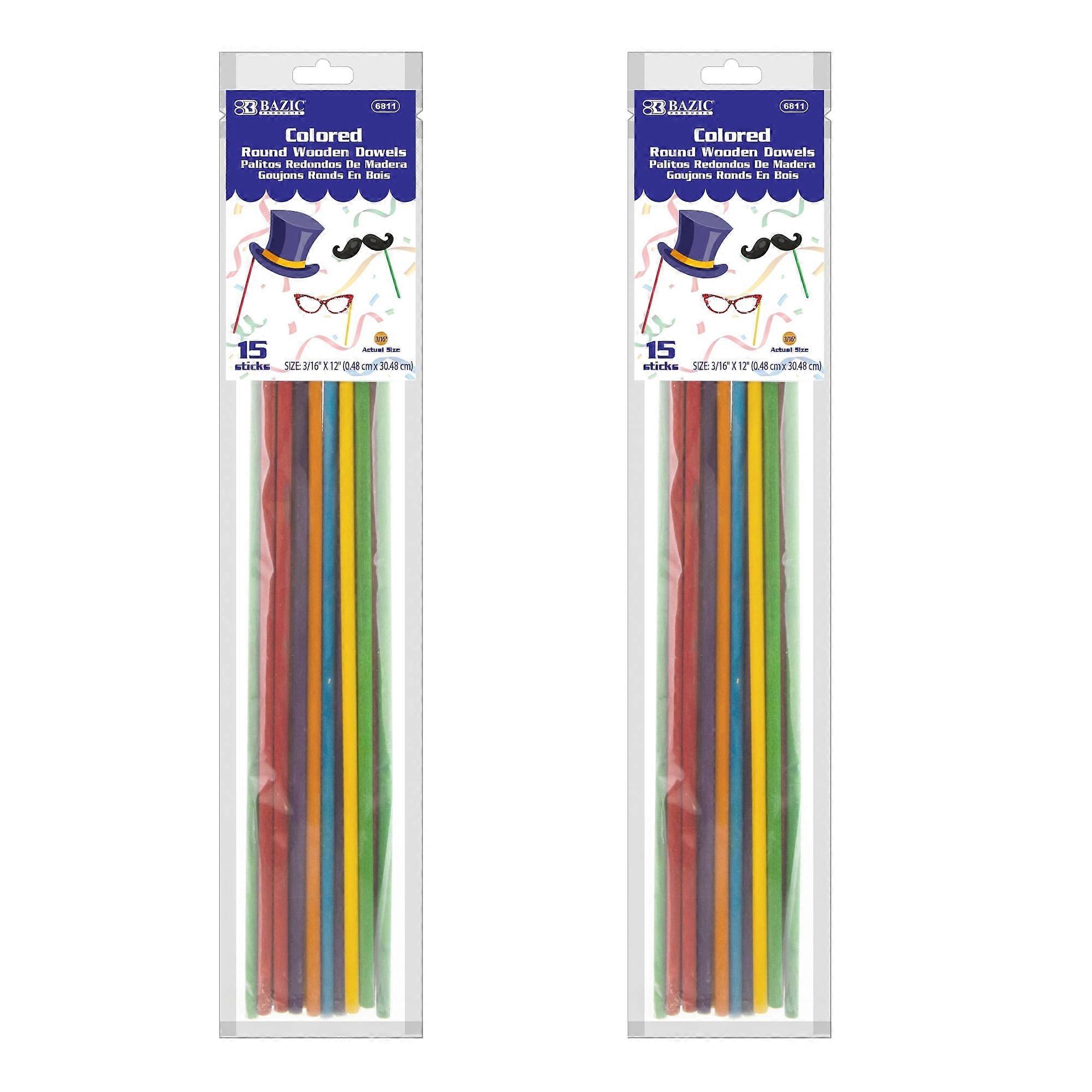 BAZIC Wooden Dowel Rods Wood Sticks, 3/16" x 12" Colored Hardwood Stick, 30-Count