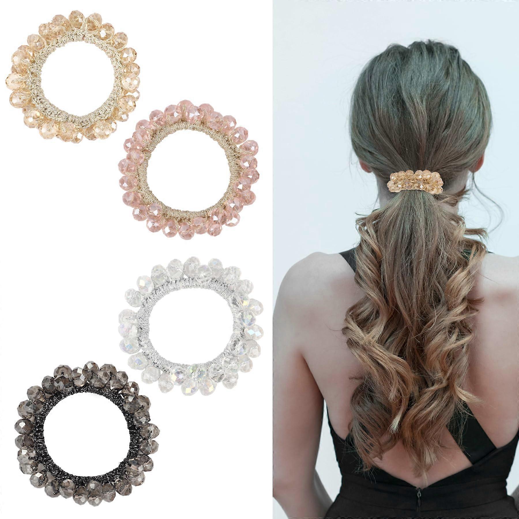 Rhinestone Hair Ties for Thick Hair Women Ponytail Holders NoDamage Elastic Bands 4PCS