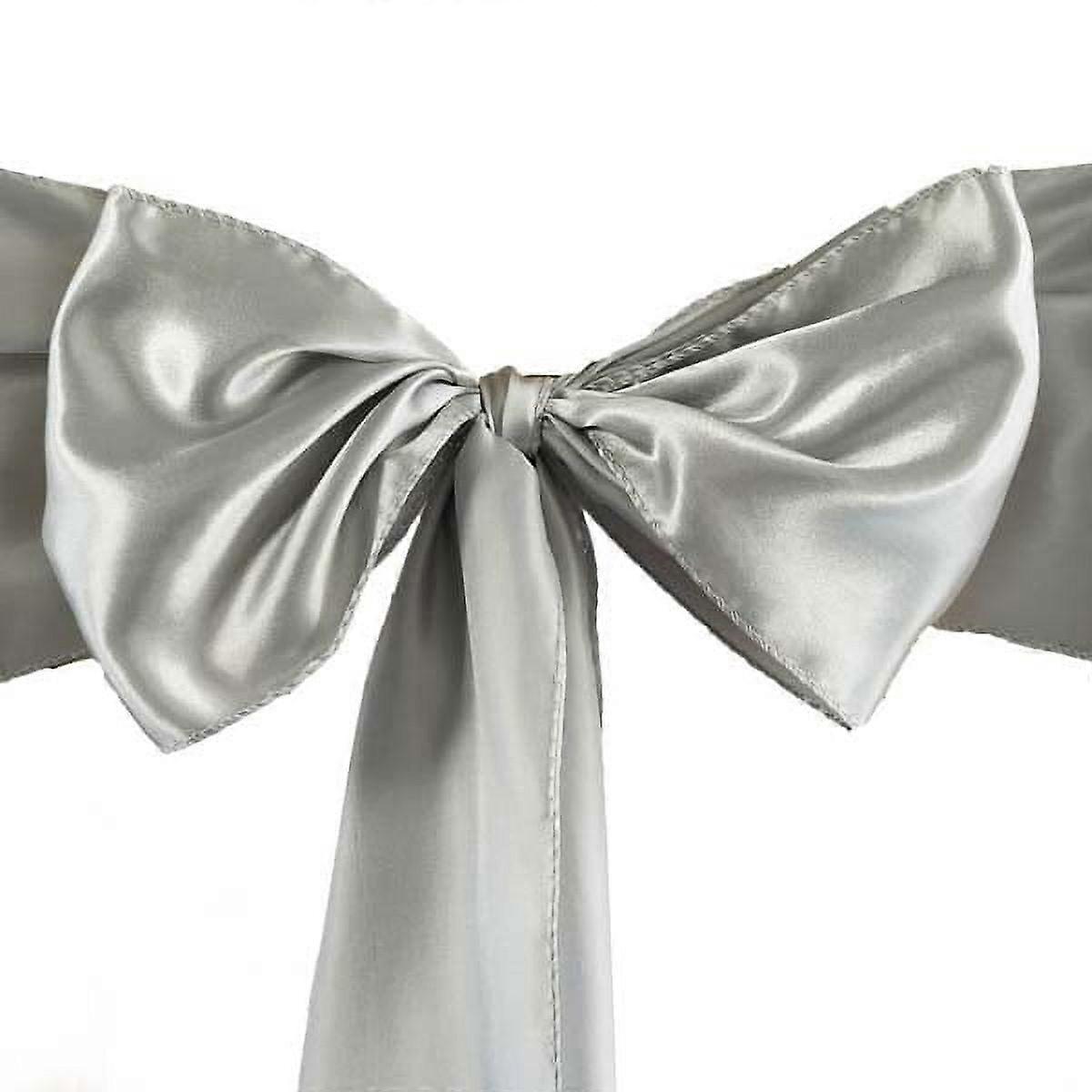 Efavormart 25pcs Silver SATIN Chair Sashes Tie Bows for Wedding Events Decor Chair Bow Sash Party Decoration Supplies 6 x106"