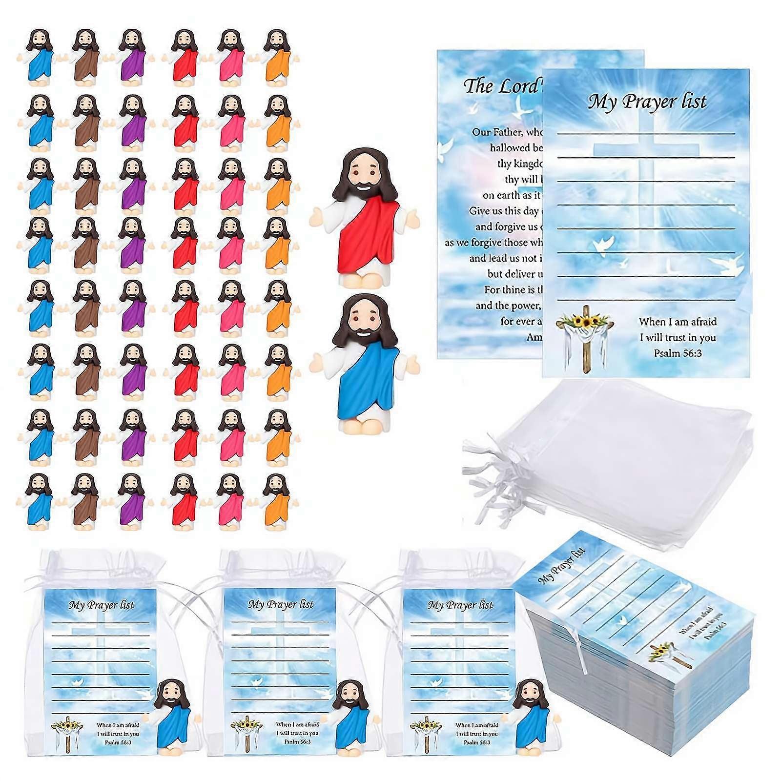 50 Sets Mini Jesus Figurines with 50 Prayer Cards & Bags - Compatible with WSRRDRECVHi - for Religious Favors, Sunday School, Baptism Gifts