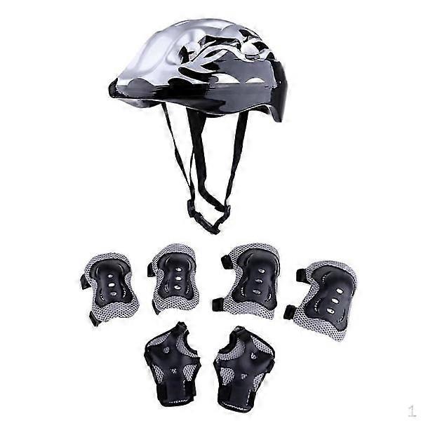 7pcs 8-62cm Helmet with Knee, Elbow & Wrist Protection Set Compatible with Skateboard, Bicycle, Inline/Roller Skates grey