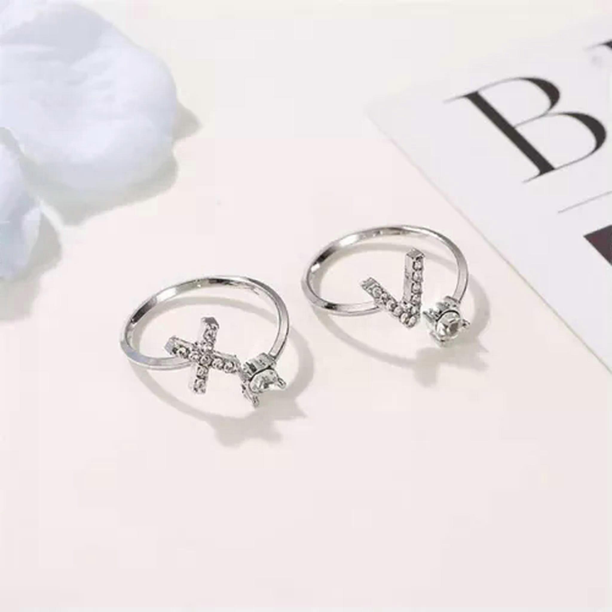 RSAMD Shining Rhinestone 26 Letters Adjustable Initial Opening Ring Charm Jewelry GiJO-A23