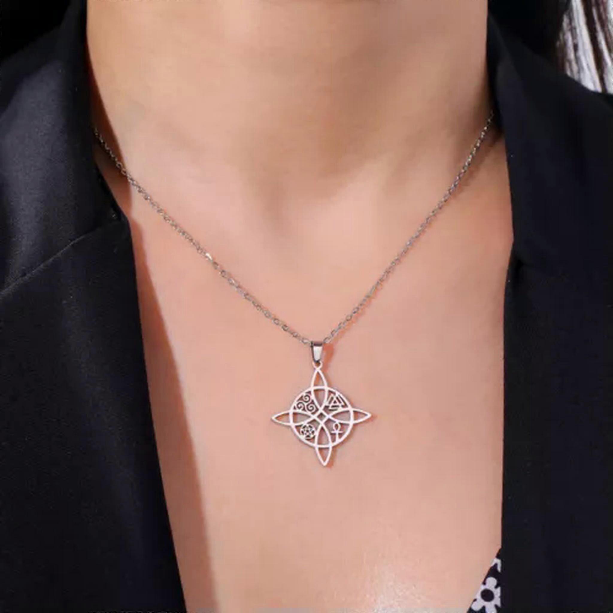 RSAMD Witchcraft Witch Knot Pendant Necklace for Women Stainless Steel Amulet-Steel Color