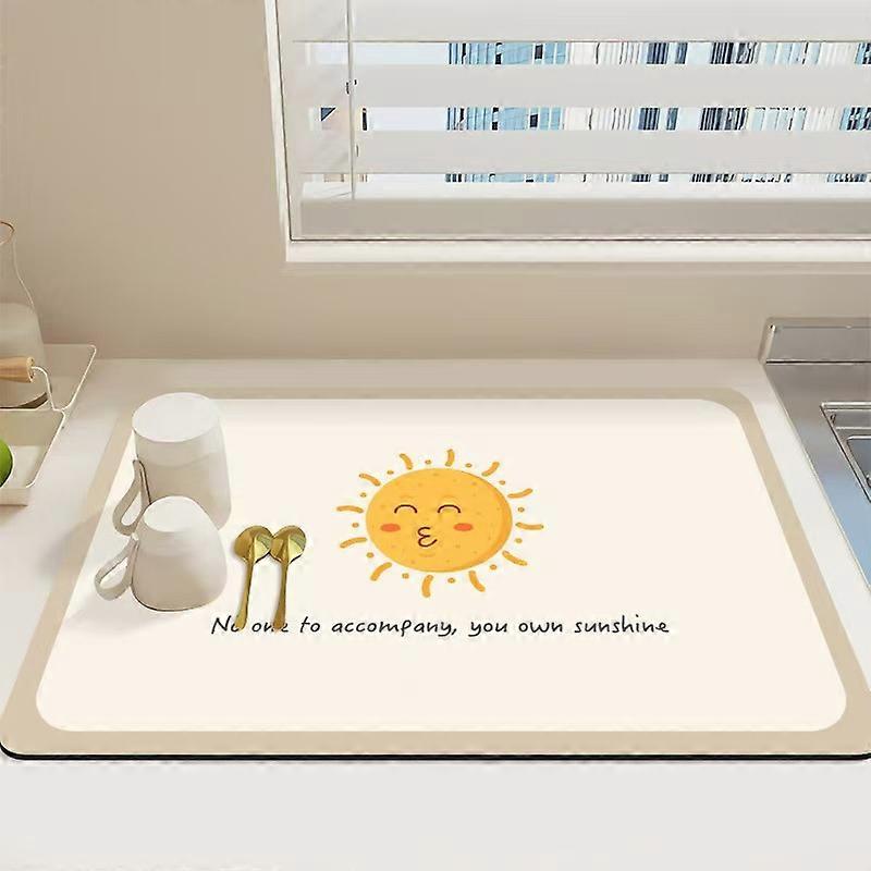 Floral Sun Diatomaceous Earth Kitchen Mat - Absorbent Quick-Drying Heat-Resistant Non-Slip Dish Drying Pad for Countertop Sink