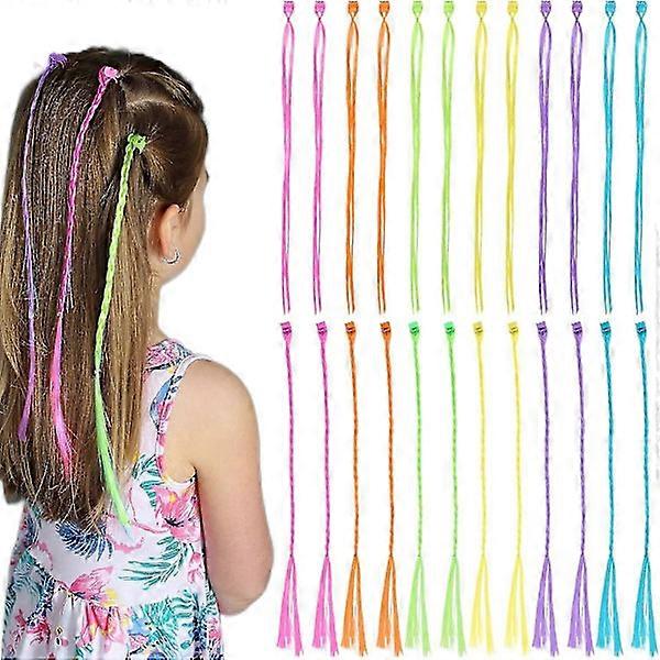 36 pcs Kids Hair Extensions with Clips, Braided Hair Accessories for Girls, Party Gifts, Performance Decor (12 Colors)