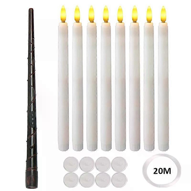Floating Candles with Magic Wand Remote LED Flickering Flameless Warm Hanging Candle Battery Operated Birthday Halloween Party