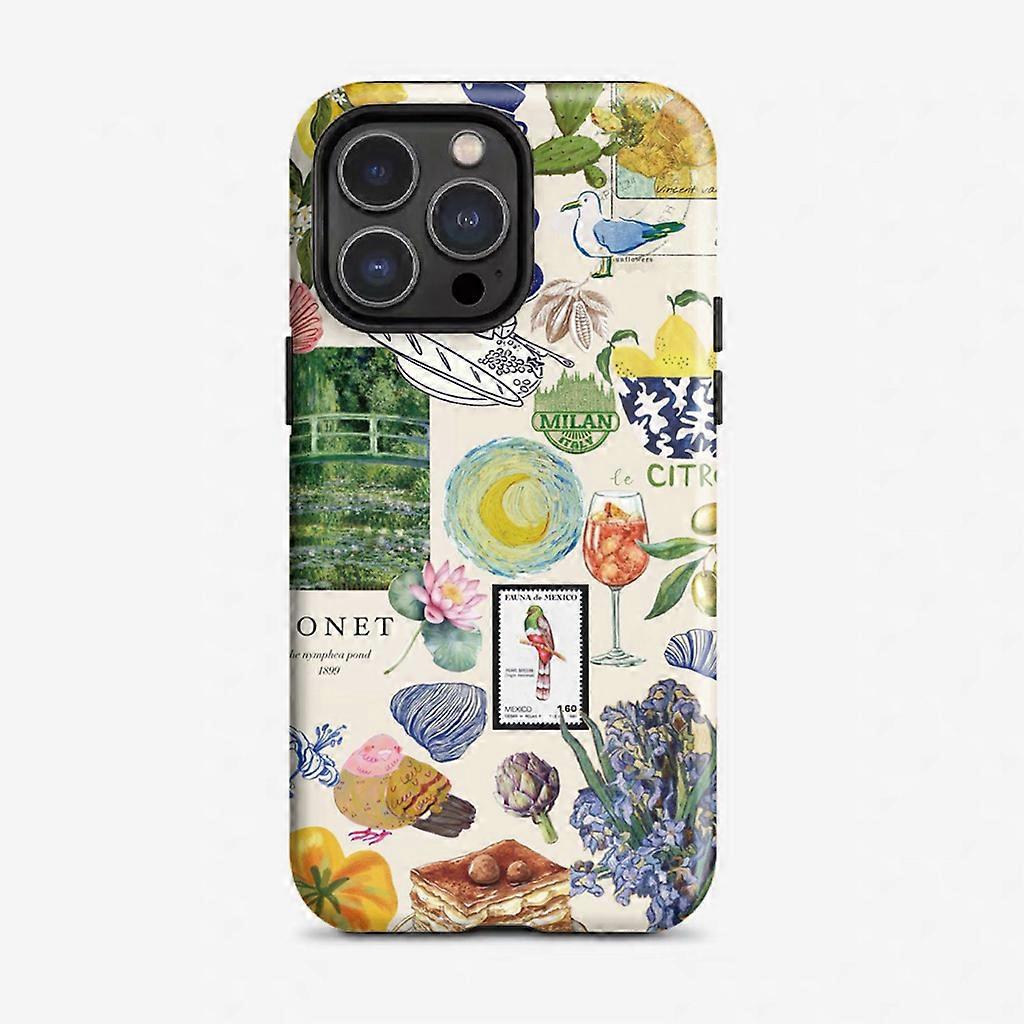 Fashion retro collage pattern Phone Case for iPhone17 17Air 16ProMax 16e 15 14 14 12mini 7Plus XR 2in1 tough glossy case