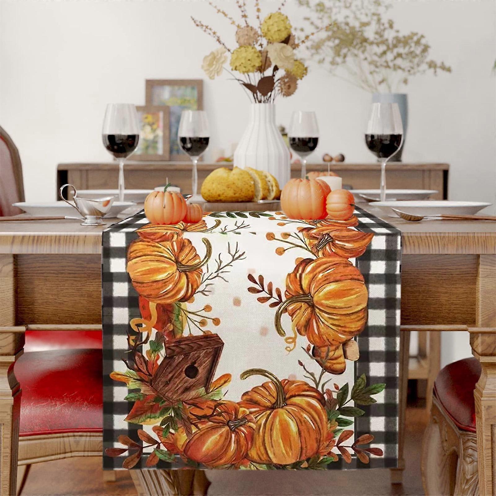 TUTUnaumb Thanksgiving Table Runner, 13x59 Inch, Maple Leaves Fall Buffalo Plaid, compatible with Fall Harvest & Halloween Decor