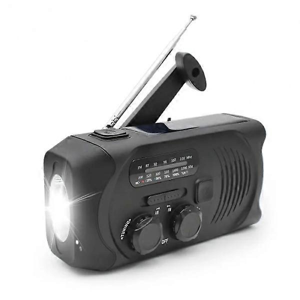 Crank Radio Solar Cells Flashlight Powerbank 2000mAh (1-Pack) Black