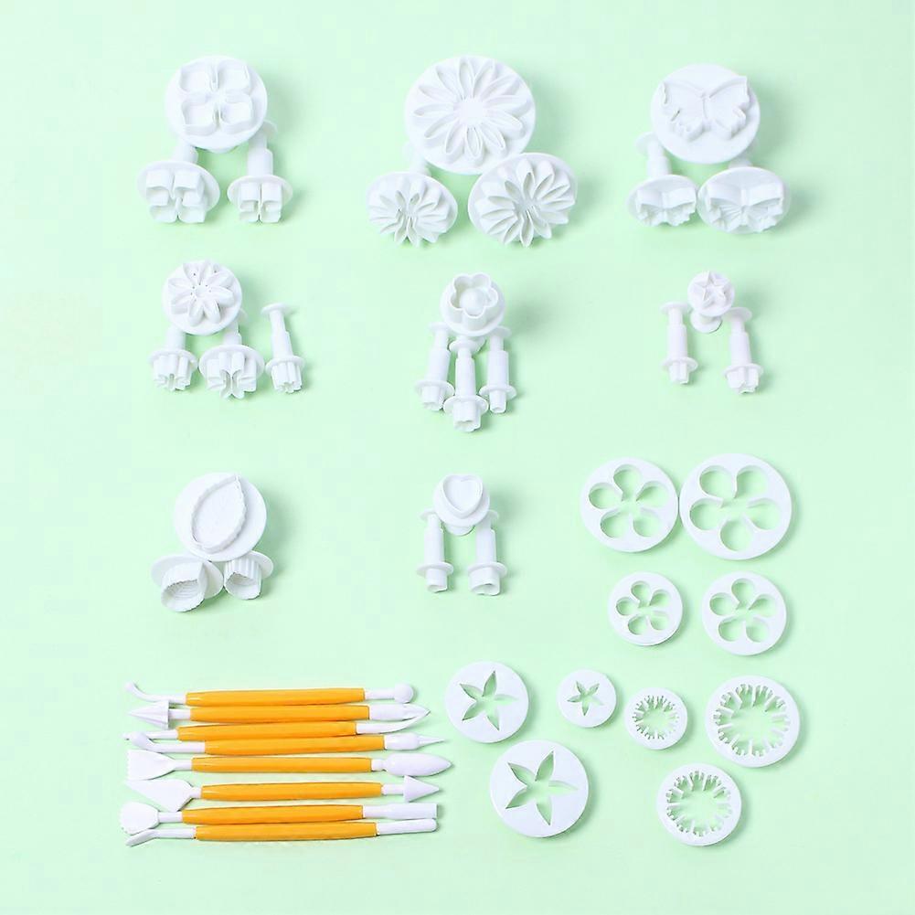 Baking tools set, 46 pieces, 14 styles, fondant cake and cookie molds, spring-loaded embossing and printing molds