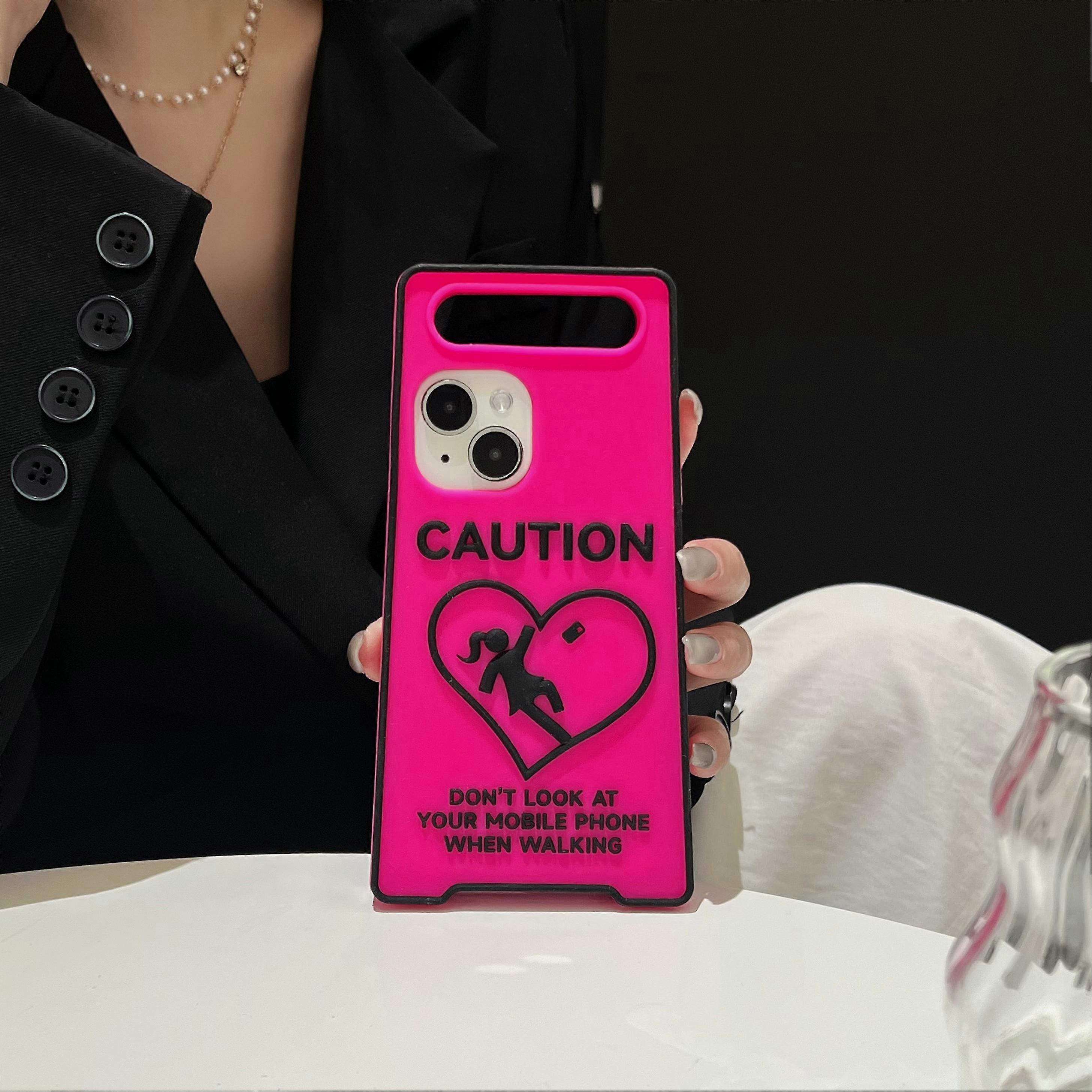 3D Funny Warmly Caution Sign Phone Case for iPhone 12 13 14 15 16 Pro Max Billboard Night Light Luminous Neon Color Soft Cover