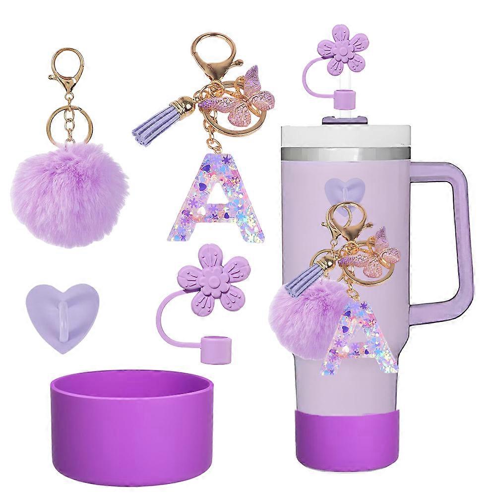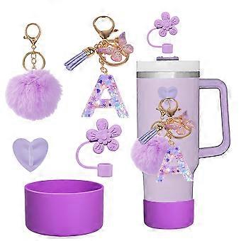 5pcs Accessories Set For Stanley Tumbler with Handle Resin Alphabet Initial Letter Keychain Keyring for Women Purse Handbags