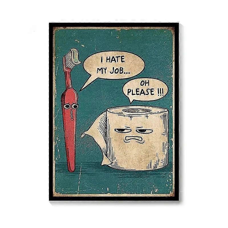 Funny Toothbrush and Toilet Paper Poster I Hate My Jobs Print Canvas Painting Bathroom Wall Art Picture Washroom Decor Frameless