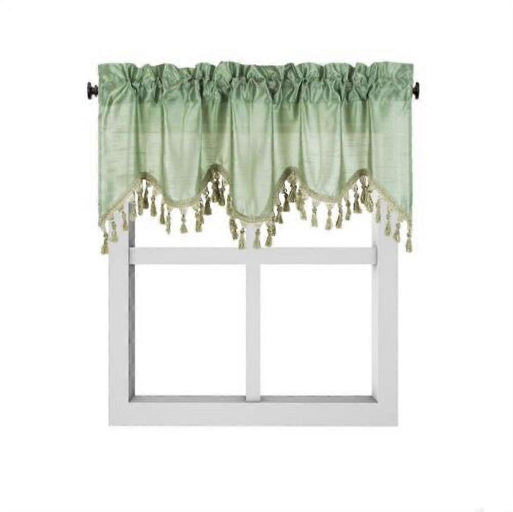 Wave valance with bead trim tassels, semisheer light filtering, rod pocket tailored for kitchen, living room decor, SAGE 52" x 18"