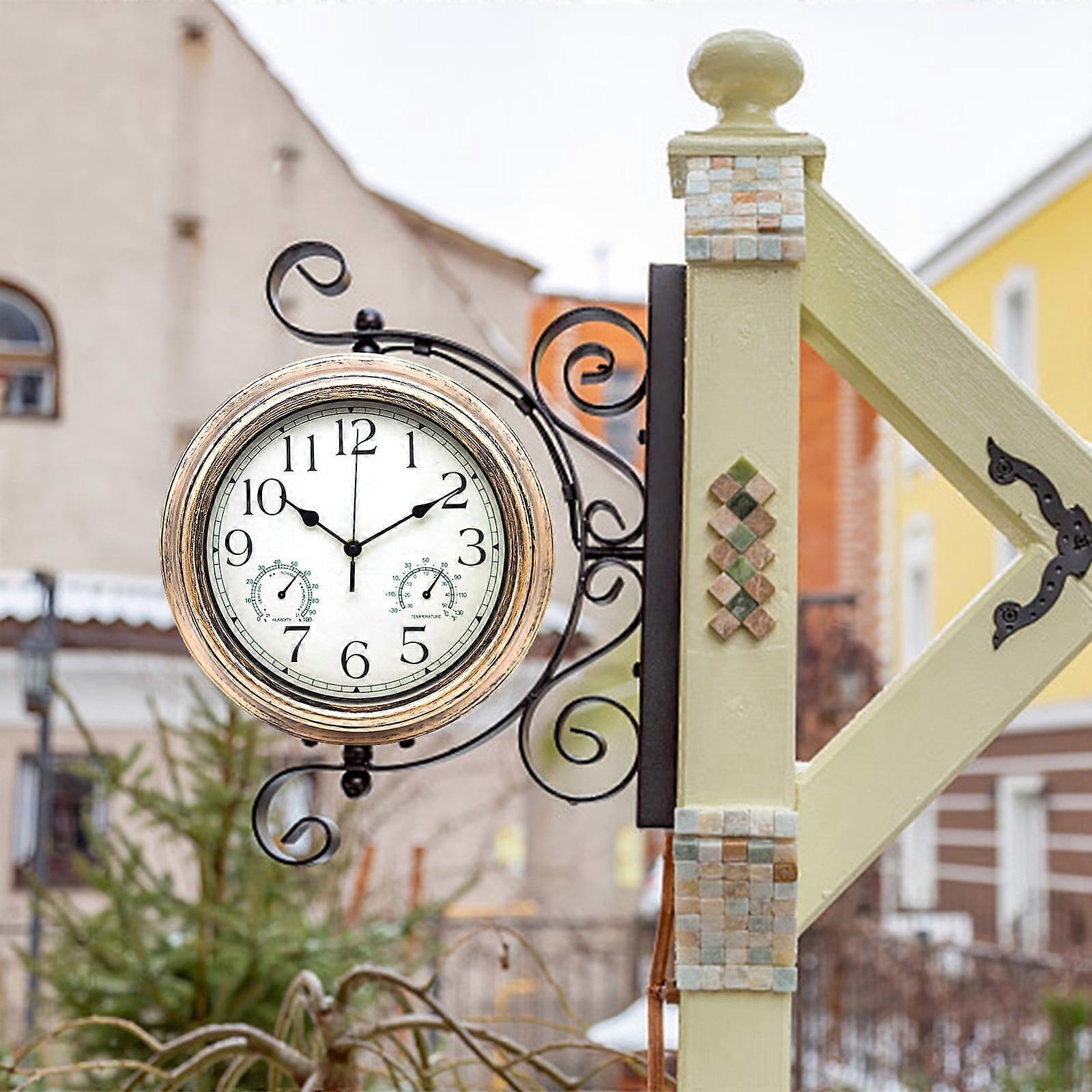 Wrjufa 12-Inch Outdoor Garden Retro Wall Clock with Temperature and Humidity Measurement, Large Easy-to-Read Numbers for Indoor/Outdoor Use D