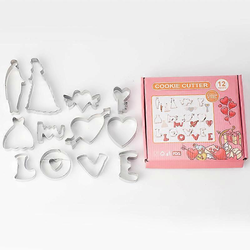DIY Baking Cookie Mold Set, 12 Pieces, Stainless Steel Cookie Cutting Set, Valentine's Day Cookie Mold