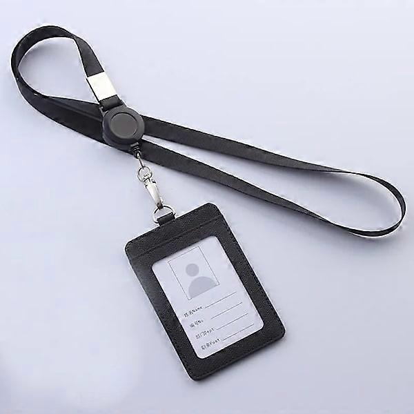 Retractable Lanyards ID Badge Holder Leather Bank Bus Pass Case Cover Men Women Bank Credit Card Holder Strap Card Holder black(.1483)