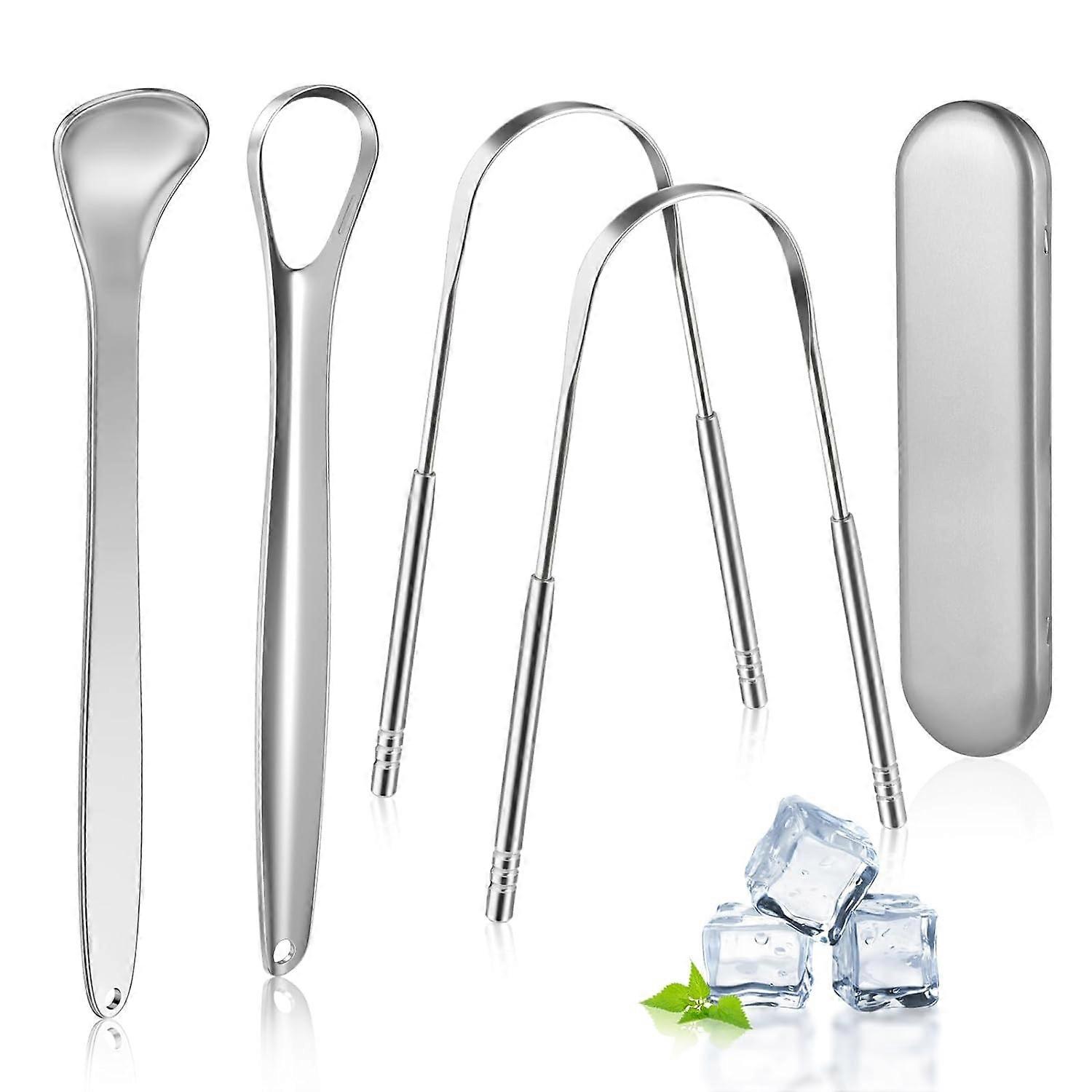Tongue Scraper, 4Pcs Tongue Cleaners Metal Tongue Scraper with Case for Adults Kids, Great for Oral Hygiene Reduce Bad Breath