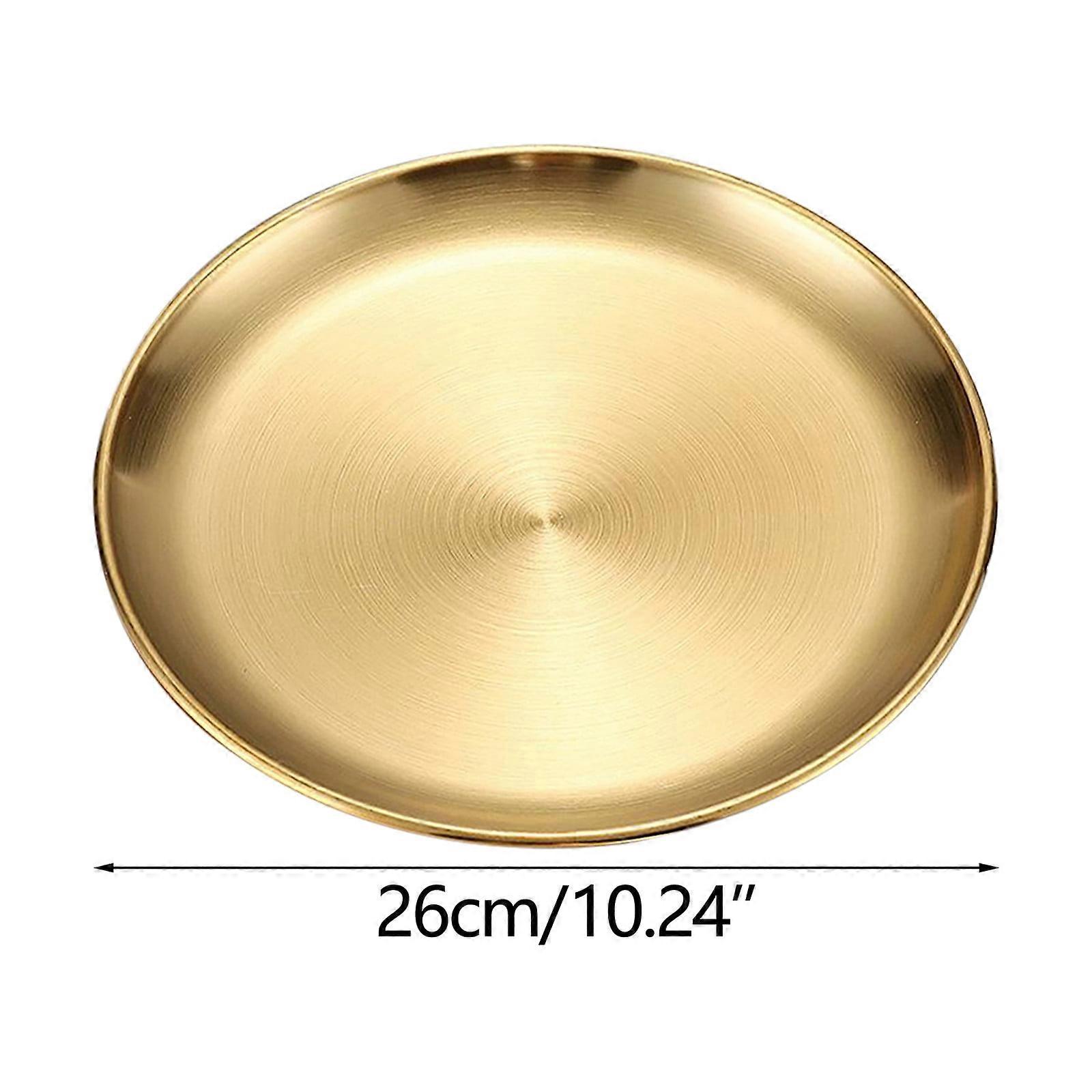 Moocorvic Round Dinner Plates, Stainless Steel Thickened Barbecue Plates, Shatterproof & Dishwasher Safe(Gold)