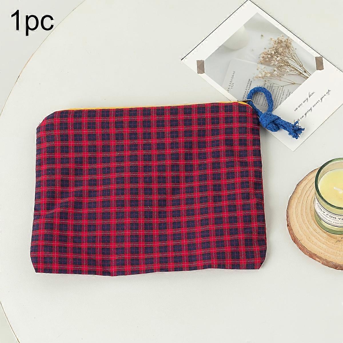1pc Simple Plaid Portable Storage Bag Cosmetic Pouch Toiletry Bag Large Capacity Minimalist Solid Color Essential for Travel