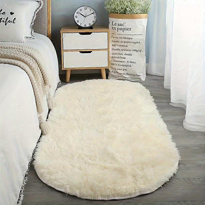 [Ultra-Soft] Ultra-Soft Oval Bedside Mat | 1 | Light Blue Polyester | Fluffy Texture for Comfortable Footrest | Bedroom Decor