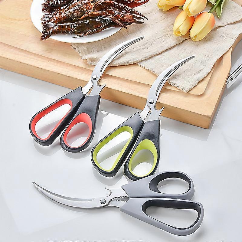 Household stainless steel seafood scissors, multi-functional lobster scissors, shrimp intestinal devein cutter, cooked food scissors, curved