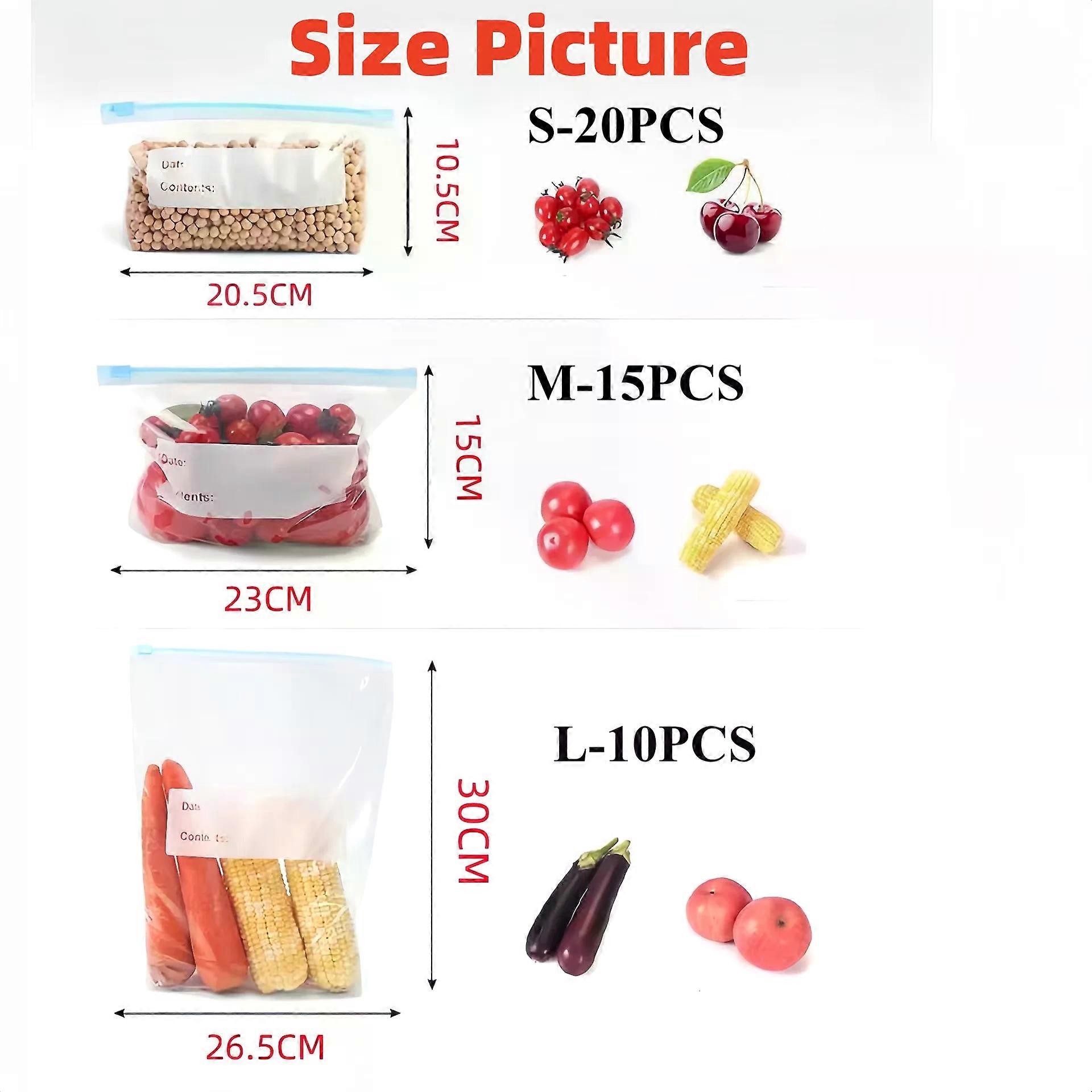 45PCS Silicone Food Storage Leakproof Reusable Stand Up Zip Shut Bags Cup Fresh Food Storage Bag Refrigerator Fresh Wrap